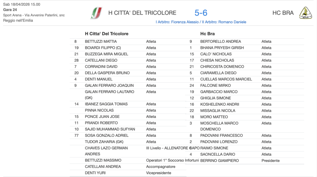 Città del TricoloreHC Bra