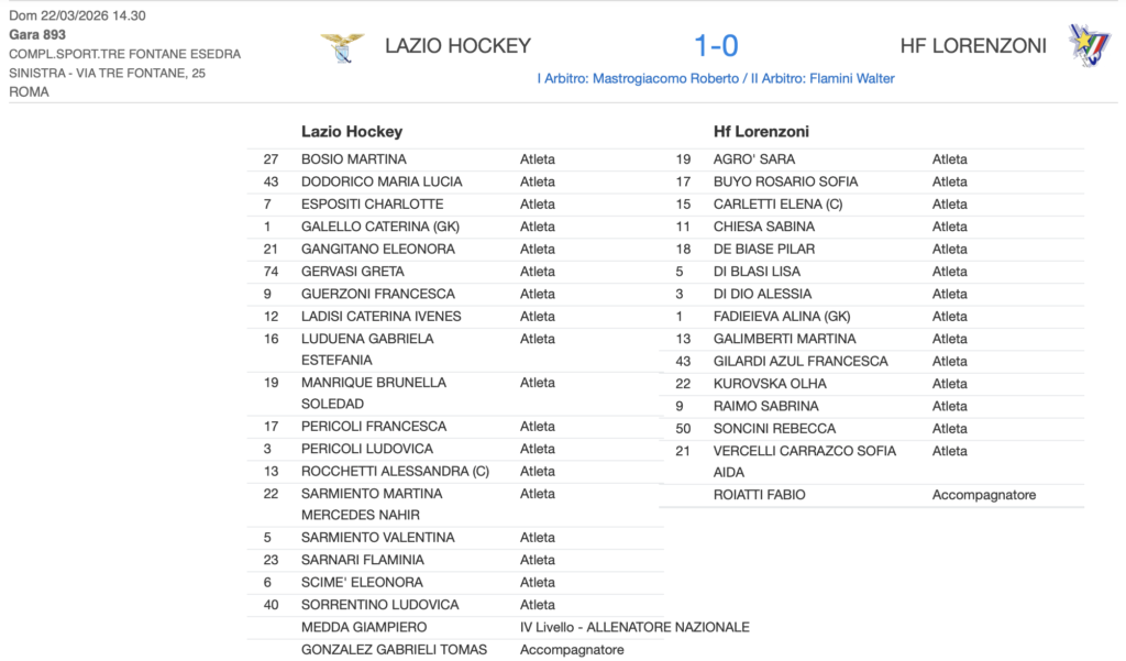 Una gara equilibrata decisa, pochi istanti prima del fischio finale, da una rete di Brunella Manrique. Ottimo l’esordio della Lazio che ha tenuto testa alle favorite ragazze della Lorenzoni superate grazie ad una prestazione di grande carattere ed attenzione.